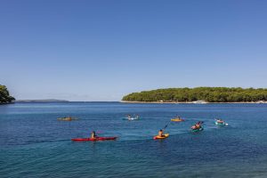 Nakon čaja, kave i doručka u ranim jutarnjim satima, napuštamo kamp i krećemo prema bazi Fun in the Sun u Srebrnoj uvali. Slijedi cijelodnevni izlet kajacima, tijekom kojeg ćemo posjetiti manje otočiće Koludarac i Murtar, kao i stari svjetionik ispred Malog Lošinja. Uživajte u kupanju i ronjenju po uvalama. Tijekom dana planirane su pauze za odmor, kao i lunch paketi i voće. Povratak u kamp očekuje se oko 18 sati, a oko 20 sati slijedi večera u smještaju.