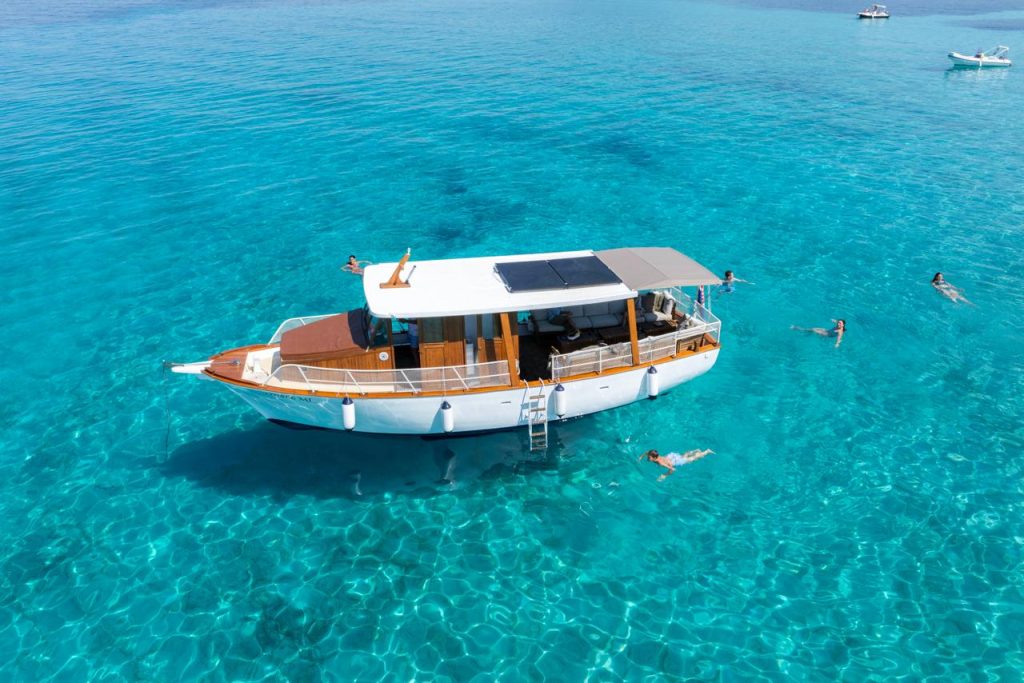 Na brodu su uključeni hrana i piće, što će dodatno pridonijeti vašem uživanju i opuštanju. Uživajte u svježim morskim specijalitetima, salatama i pićima, dok se sunčate i upijate atmosferu. Naš tim će se pobrinuti da se osjećate ugodno i da svaki trenutak provedete bezbrižno.